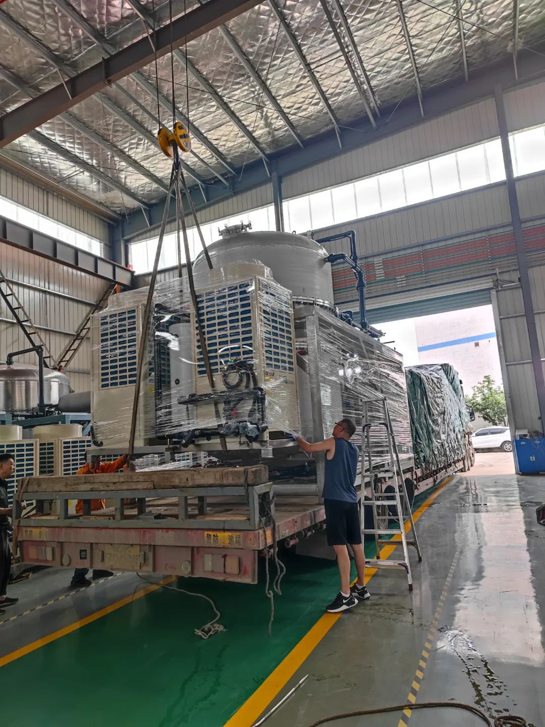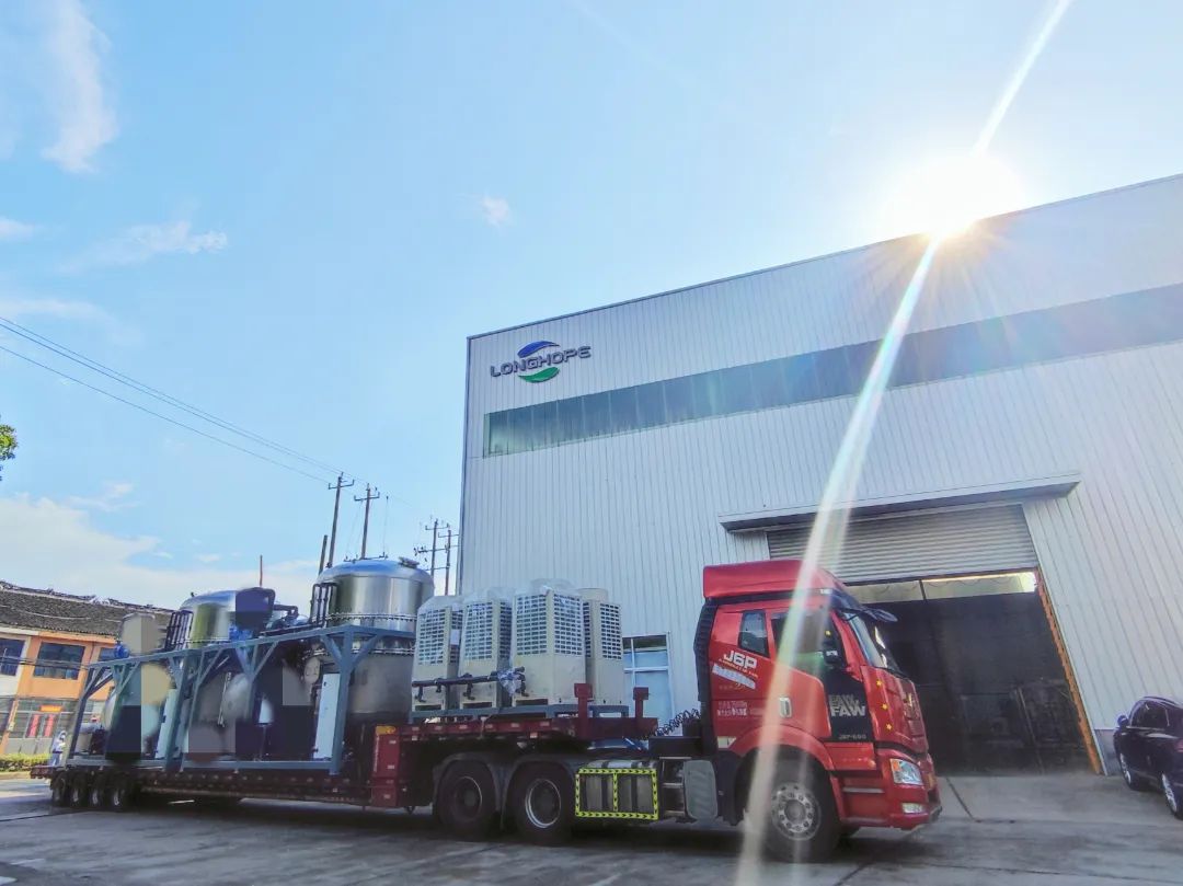7月13日,朗盼環境完成了四月中標中鈔的項目:1臺20噸/天低溫熱泵真空蒸發器+1臺3噸/天的低溫熱泵真空結晶器,并裝車發往成都,以及太倉客戶的1臺10噸/天低溫熱泵真空蒸發器,順利完成項目交付。