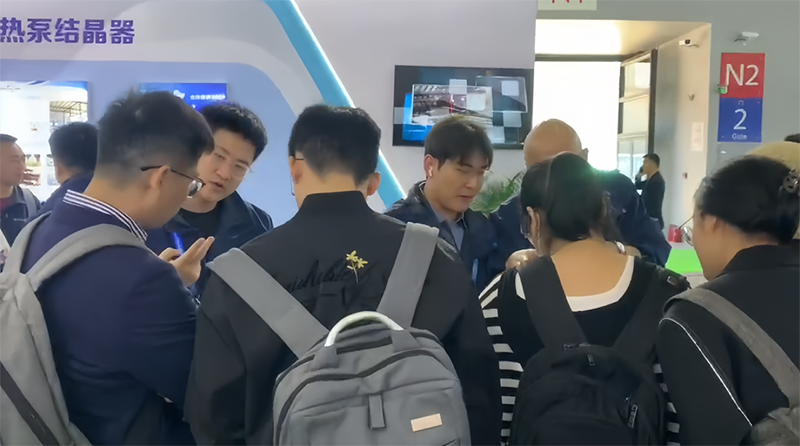 V-HP低溫蒸發器的展出,不僅為工業市場帶來了更智能、更高效、更低耗的廢水處理新選擇,也充分展現了朗盼環境在廢水處理領域的雄厚實力。我司自主研發的低溫熱泵結晶器,通過將溫敏性生物合成與結晶技術及微流控技術相融合,實現了在低溫條件下對生物制品的高效合成濃縮與結晶。這種技術的應用有效降低了高溫蒸發可能帶來的生物活性物質損害風險,從而在市場上填補了技術空白。為了讓更多的客戶了解我司產品的實力,現場開啟了填寫意向單環節,我司銷售們應接不暇。